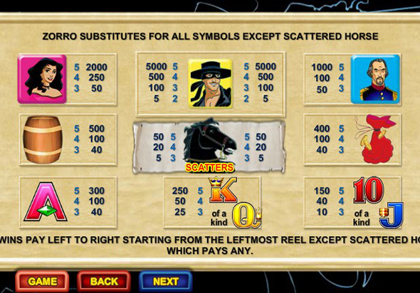 Уникальный игровой автомат Zorro был сделан в тематике популярных фильмов «Маска Зорро» и «Легенда Зорро» с Антонио Бандерасом в главной роли. В свое время эти кинокартины совершили настоящий фурор и подарили миру очередного персонажа, который отличается невероятным чувством долга и готов всегда прийти на помощь. Познакомившись с интернет автоматом Zorro игроки заметят множество знакомых изображений по фильму и, наверняка, захотят насладиться потрясающим игровым процессом в лучших интернет клубах с игрой на деньги.