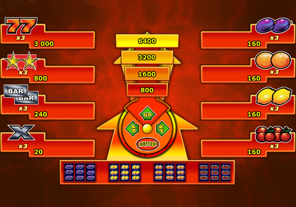 Символ с изображением знаков удачи – двойных семерок, самый дорогой в игре, три таких символа увеличат ставку на линию в 750 раз, свое появление на экране они обозначат особо жарким пламенем. Это далеко не предельный выигрыш за одну комбинацию, так как бывает, что эти символы полностью заполняют все три барабана и играют по нескольким линиям.