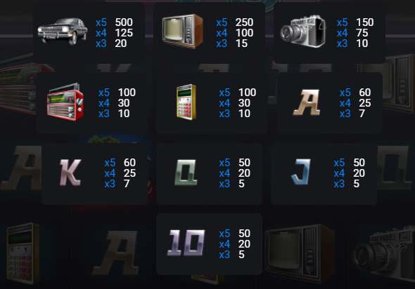 Винтажный слот об эпохе 70-х – одна из лучших работ компании Evoplay. Высококачественная графика и динамическая анимация – безусловные достояния машины. Вместо привычных символов в виде букв и цифр, на барабанах – самые распространенные вещи из 70-х. А рядом с ними стоит владелец – типичный дядя Вася, недавно купивший «Волгу». Он привез модные солнцезащитные очки из-за «бугра» и сопроводит вас на протяжении всей игры. Ведь сам – еще тот любитель азарта.